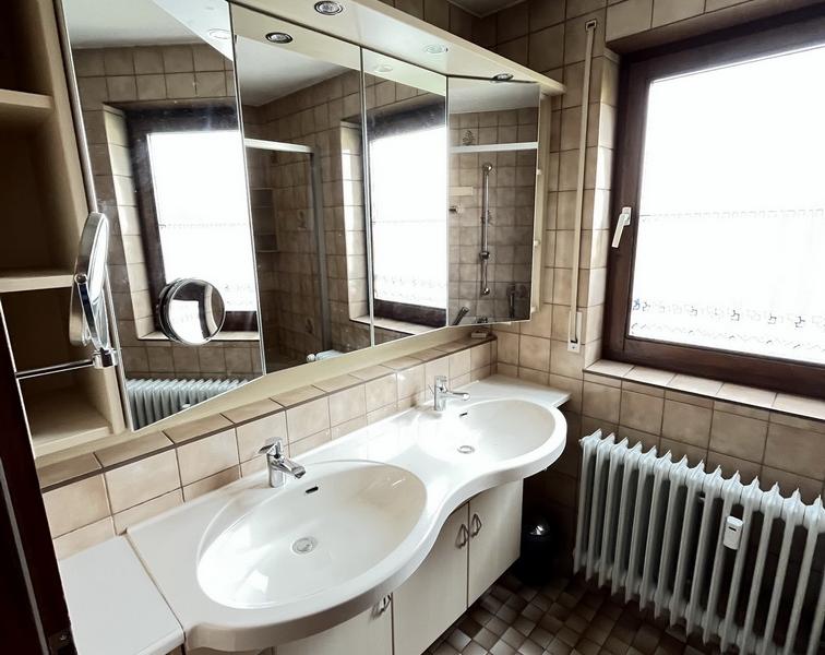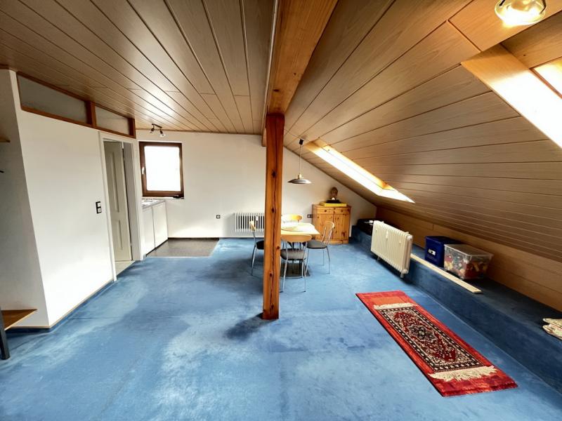Mit 4,5 Zimmern und ca. 110 m² Wohnfläche bietet diese gut aufgeteilte Wohnung ein tolles Platzangebot. Die Hauptwohnung mit ca. 82 m² befindet sich im 1. Obergeschoss. Zur Wohnung gehört ein weiteres sehr geräumiges Studio-Zimmer im Dachgeschoss, mit ca. 28 m² Wohnfläche, eigenem Duschbad/WC und kleiner Küchenzeile. Die Wohnung ist überwiegend dem Baujahr entsprechend ausgestattet. Modernisierungen und Renovierungen sind erforderlich. |